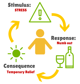When stress hits us (stimulus), we normally respond in a way that would create a reward (response) to relieve that stress. Unfortunately, with addiction the initial reward is relatively short-lived and eventually fades (consequence). The addict will ‘chase the high’ and repeat the response over and over again.